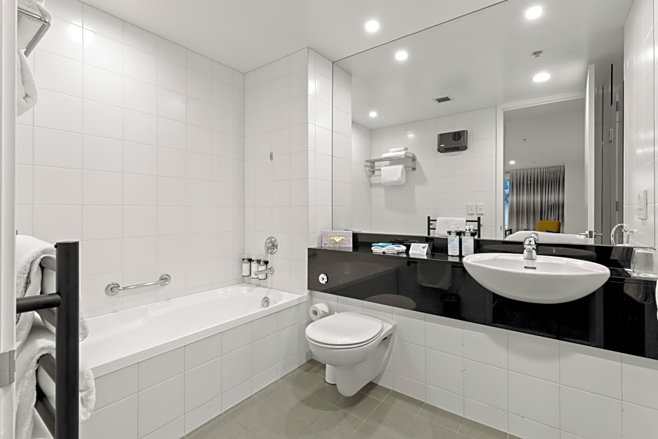 One Bedroom Suite King - Mountain View is 753 square feet and includes a king-size bed 150-183 width plus balcony, desk, safe, and bathrobes and is Wheelchair-accessible.